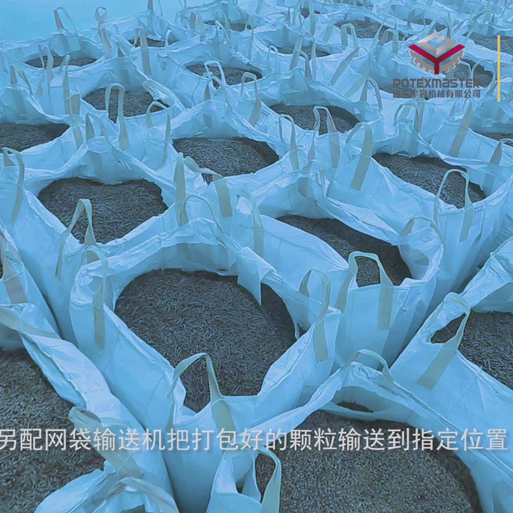Screened wood pellets are transported to the finished product silo by the big-angle belt conveyor. The finished product is equipped with an automatic weighing of the tonnage scale, and the pellets are packed according to the set weight, and the net bag conveyor delivers the packaged pellets to the specified location.